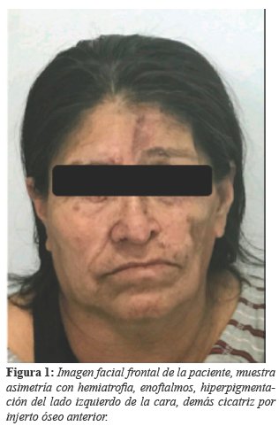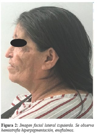 Se presenta caso de paciente femenina, 54 años de edad, raza mestiza, procedente de zona rural, con antecedente patológico personal de atrofia hemifacial izquierda de 40 años de evolución y diabetes mellitus tipo 2 (DM2), no insulinodependiente de dos años de evolución.