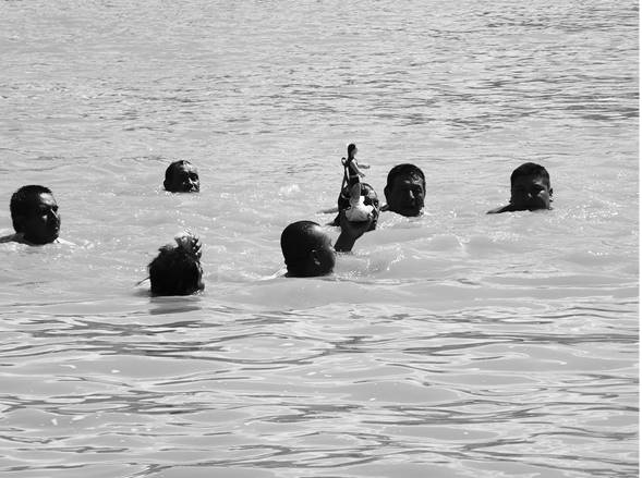 Poco a poco, se congregan en las orillas del río algunos centenares de personas provenientes de todas las comunidades náayeri, incluso de las más alejadas, como Santa Teresa y Dolores, que se encuentran en la zona más alta de la sierra. Algunos de los presentes atraviesan el ramo del río que separa la orilla de la piedra sagrada para ir a dejar pequeñas ofrendas compuestas por diversas especies de flores, velas y manojos de algodón.8