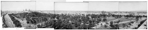 Por su parte, William Henry Jackson, además de registrar las imágenes desde la iglesia de San José, también realizó por lo menos otras tres tomas desde el edificio de la estación del Ferrocarril Central, situado al otro lado de la Alameda, en un emplazamiento que algunos denominan como de “contracampo”. Es probable que haya pretendido hacer otra “panorámica” con una nueva serie de fotografías, pero al no tener un resultado tan espectacular como el de la imagen 6, solo hizo algunas para mostrar desde otro encuadre parte de la ciudad de San Luis Potosí.
