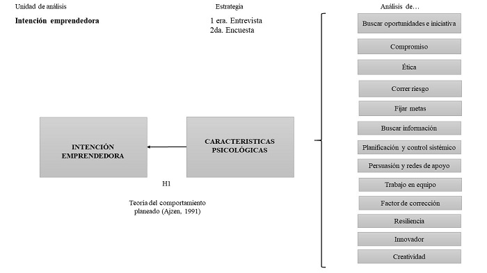 Considerando los trabajos hasta aquí mencionados, la elección de las características psicológicas se sustenta en la TCP de Azjen (1991) para la interpretación de la intención de emprender condicionada por las expectativas sobre la conducta y la percepción del emprendedor para conseguir y controlar los resultados de su acción emprendedora. En el cuadro 1 se resumen las características psicológicas consideradas para este estudio.