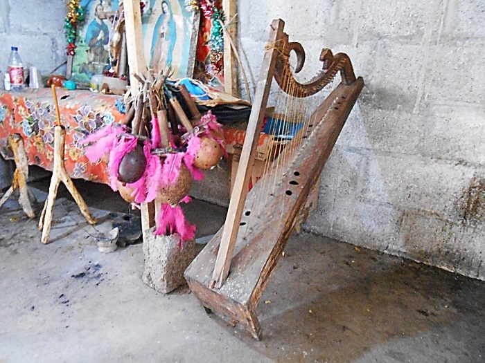 Juan Diego hace jaranitas y rabelitos, instrumentos en miniatura dispuestos y custodiados sobre el altar doméstico, ya que se trata de objetos sagrados. Con ellos se interpreta el tsakam son, el “son chiquito” en honor a Dhipák, el espíritu del maíz, el cual acompaña las danzas efectuadas durante rituales para la petición y el agradecimiento de las buenas cosechas; ejemplo de ello es la fiesta en honor a San Miguel Arcángel.