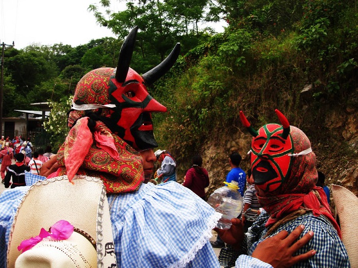 Los diablos y sus máscaras ingresan a la cuadrilla con un ritual efectuado en la casa del capitán de la danza siete días antes de la Semana Santa; en este se comparten bolimes y aguardiente. De la misma forma, hay un ritual de cierre que se realiza en el interior de una cueva de la localidad siete días después del Sábado Santo, que, como señala un interlocutor, tiene por fin principal “hacer la entrega del equipo”, es decir, dejar de disponer del traje y de la máscara que les permiten a los hombres devenir en diablos. El abandono de estos objetos prescribe un conjunto de disposiciones que, de no acatarse, pueden producir consecuencias perjudiciales en contra del propietario, entre las que destacan enfermedades, sueños constantes con el diablo, la locura y la muerte.