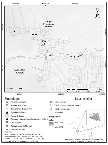 Con la llegada por completo de la Asarco en 1923, en la antigua fracción de Morales2 inició un proceso de transformación del espacio urbanístico, en el cual diversos actores e instituciones se anudarían. La empresa tuvo un papel relevante en dichos cambios, con la colaboración de instituciones de tipo social, religioso, sindical, cooperativista y de la propia comunidad obrero-metalurgista en las inmediaciones de la planta. Su morfología social experimentó paulatinamente transformaciones desencadenadas por la migración de trabajadores de otras latitudes, así como por la realización de obras de tipo social, educativas, de salud, deportivas y recreativas. En este contexto, las estrategias de intervención paternalistas se asocian a la expresión espacial de las relaciones productivas, pero también a las del “no trabajo”. De esta manera, se identifican con claridad las relaciones entre la praxis empresarial y la configuración del espacio de gestión y de control o intervención social.