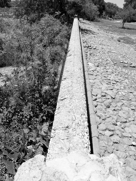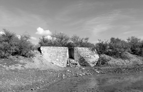 Como resultado del trabajo de campo, se identificaron siete norias cuyo sistema hidráulico consistía en el aprovechamiento de las aguas subálveas provenientes de un tanque (bordo) construido de forma perpendicular a las ramblas, tres de las cuales contaban con acueductos subterráneos para favorecer la recuperación del nivel piezométrico del pozo (véase la figura 2). De entre ellas, el sistema hidráulico de la noria de Pozo Salado resulta de gran interés por su complejidad (véase la fotografía 1).