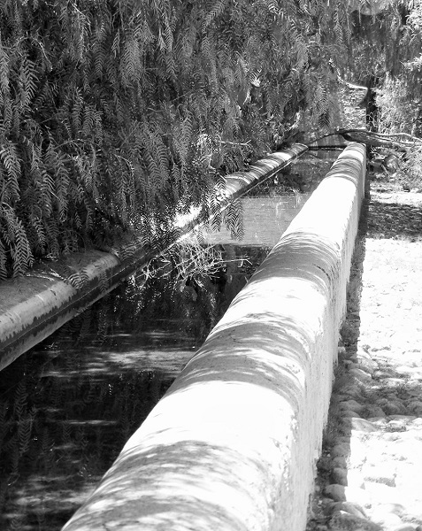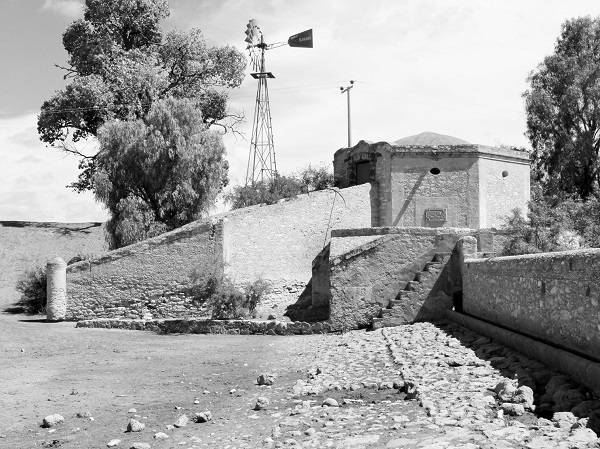 Resumen: El objetivo de la presente investigación es describir el sistema hidráulico tanque-pozo de Pozo Salado durante el porfiriato, incluyendo la captación, extracción, distribución del agua y la maquinaria de la noria. Se realizó un levantamiento topográfico y un relevamiento de información arquitectónica mediante inventario directo, acompañado de la elaboración de croquis y la conformación de un archivo fotográfico. Esta investigación reveló la existencia de un acueducto subterráneo que reconducía las aguas subálveas provenientes de un tanque hacia un pozo, donde eran extraídas mediante una noria de madera. A pesar de la carencia de información documental, del actual deterioro de la infraestructura y de la desaparición de elementos estructurales, los hallazgos aquí publicados son una contribución al conocimiento del sistema tanque-pozo en el altiplano potosino, una tecnología muy similar a la reportada en España, y una de las más avanzadas de la hacienda de Cruces durante el siglo XIX.