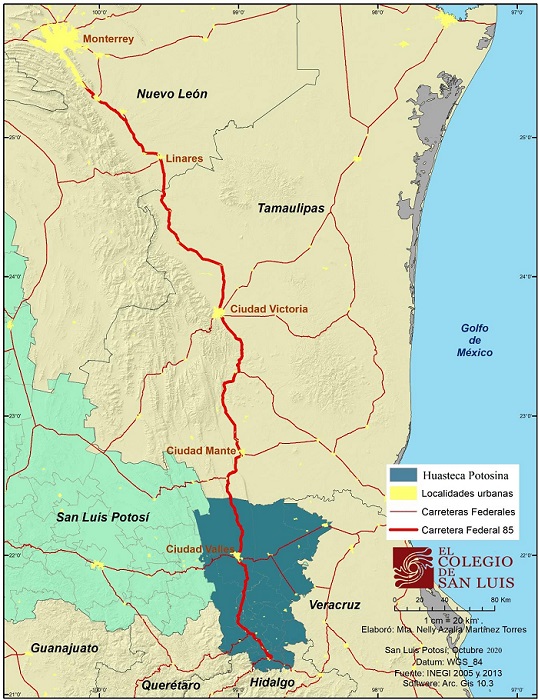 Otra dificultad afrontada por los campesinos caficultores de la Huasteca potosina es la migración. Si bien este fenómeno no es un tema nuevo, desde el siglo pasado ha cobrado importancia la ruta por la que los caficultores migran hacia Monterrey o Estados Unidos, la carretera 85, México-Laredo (véase la figura 4).
