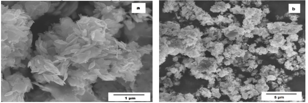 Micrografías SEM. SnS2-6H (a) Cristal (b) Aglomerado