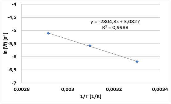 En la Figura Nº 5 se grafica la dependencia de ln (υf) vs. 1/T.