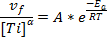 Donde Ea es la energía de activación, A es el factor pre-exponencial, and R es la constante universal de los gases ideales, se incorpora la ecuación de velocidad de formación de los TOHAC (υf) (inicialmente propuesta por Baroš et al [13], y modificada a nuestro sistema en medio acuoso).
