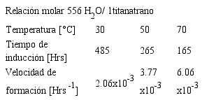 Valores del tiempo de inducción y la velocidad de formación de núcleos primarios oxo – hidroxo - atrano de titanio en función de la temperatura