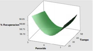 Gráfica de superficie de % de recuperación vs. tiempo, H2O2[3]