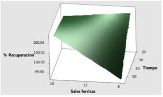 Gráfica de superficie de % de recuperación vs. tiempo, sales férricas [3]