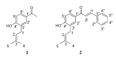 Hydroxy-3-(3’-methyl-2’-butenyl acetophenone (1) and its synthetic derivate (2)
