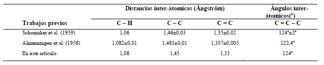 El primer trabajo experimental que reporta la estructura conformacional del 1,3-Butadieno data de 1939, mediante técnicas de difracción de electrones, innovador para la época [15]. Las fotografías obtenidas fueron difusas, por lo que la determinación de la conformación de la molécula se realizó con dificultad y según los propios autores, sin la precisión deseada.