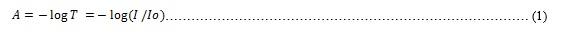 Cuando un haz de radiación UV-VIS atraviesa una solución que contiene un analito absorbente, la intensidad que atraviesa la muestra (I)* es menor que la del haz incidente (I0). La fracción de radiación que ha traspasado la muestra se denomina transmitancia (T= I / I0). La transmitancia (T) está relacionada con la absorbancia (A) de acuerdo a la siguiente expresión: