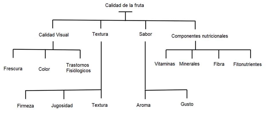 El color es una de las principales características de importancia económica en las frutas. Éste es caracterizado en la superficie mediante un colorímetro. Esta característica es de suma importancia en el consumidor ya que proporciona una percepción de calidad en la fruta [5].