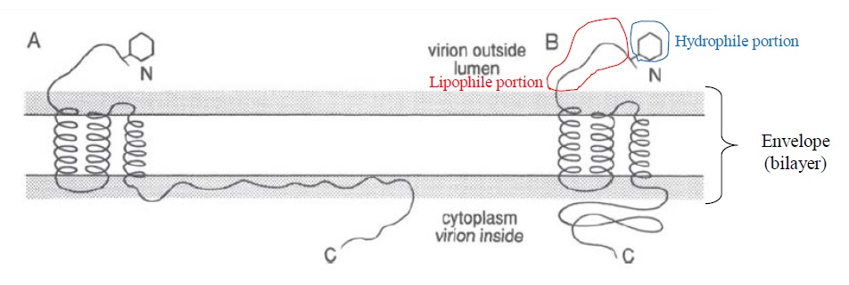 Cuando una cadena polipeptídica se le ha unido a una molécula de sacárido, la molécula combinada se convierte en una glicoproteína. La unión se realiza de forma covalente, lo que significa que los átomos individuales comparten electrones en un enlace químico. El componente sacárido de la glicoproteína puede variar desde menos del uno por ciento hasta el 80% del peso molecular. Ver figura 5. Como conclusión, diremos que gracias a su bicapa (envelope) que posee glicoproteínas, el virus tiene la capacidad de mezclarse en suficiencia tanto con grasas como con agua.