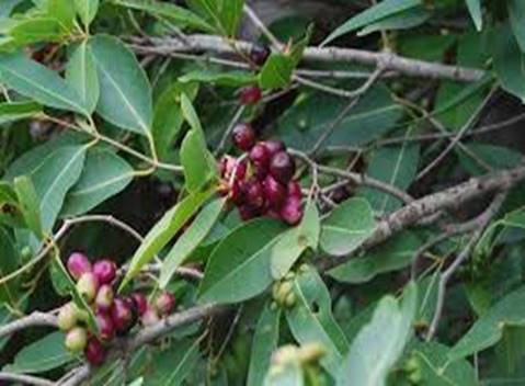 Syzygium cumini is also known as black plum, java plum, duhat plum and malabar plum. More than one thousand species were classified as belonging to the genus Syzygium. It is a slow growing species. It can reach up to 30 meters and live more than 100 years. Syzygium cumini is original from India, Nepal, Pakistan, Bangladesh, Sri Lanka, Philippines and Indonesia. It was is man-introduced to Florida, USA, Suriname, Brazil, Trinidad &Tobago and Guyana. Syzygium cumini leaves are used as food for live stocks. Wine (and vinegar) are also made from the fruits. It is rich in vitamins A and C. Leaves and bark of S. cumini are used for controlling blood pressure. Syzygium cumini seeds are used in various alternative healing system like Unani, Chinese and Ayurveda medicine. Syzygium cumini wood is water resistance, so it is used in railway sleepers and to installing motors in wells. Kaur et al. [1] investigated drying (50, 70, 90 and - 55o C) characteristics and antioxidant properties of java plum seeds and skin waste. A review on ethnobotanical uses, antimicrobial potential, pharmacological properties and phytoconstituents of Syzygium cumini was reported by Singh and Navneet [2]. Mitra et al. [3] examined effects of summer, winter, rainy and autumn seasons on UV absorbing properties of the acetone extract of S. cumini leaves pointing out the rainy season as responsible of maximum absorbing properties and it can be regarded as anti-solar agent for preparation of sun screen lotions. The UV absorption properties of the methanolic, ethanolic, benzenic, acetone and ethyl acetate leave extract of S. cumini were examined by Mitra et al. [4]. The acetone leave extract of S. cumini was found to have maximum UV absorption potential. Arunpandian et al. [5] presented a review focused on the information on traditional and medicinal use of S. cumini. Phytochemical contents and antioxidant capacity of S. cumini from Indonesia were investigated by Sukmasari et al. [6]. They have also compared the properties of the leave extract of S. cumini and S. polyanthum. Prema et al. [7] studied the phytochemical constituents and antidiabetic properties of S. cumini seeds extract. S. cumini seeds powder was found to possess antidiabetic properties in type - 2 diabetic model rats. The potential use of S. cumini methanolic leave extract for dengue by increasing platelet and leukocyte levels were described by Bandiola and Corpuz [8]. A review on pharmacological properties and therapeutic potential of S. cumini was discussed by Kumawat et al. [9]. Antimicrobial activity of S. cumini juice extract on enteric pathogenic bacteria (viz. Salmonella typhimurium, Shigella flexneri, Staphylococcus aureus and Escherichia coli) was described by Haque et al. [11]. Khan et al. [12] studied the antifungal potential of the methanolic extract of bark and leaves of S. cumini against Rhizoctonia solani. Kuhn. Hasanuzzaman et al. [13] performed phytochemical screening of methanolic, acetone, chloroform and n-hexane extracts of S. cumini seeds, root, stem, bark, leaves. The antimicrobial potential of methanolic, aqueous, and petroleum ether extracts of S. cumini leaves was tested by Elfadil et al. [14] against bacteria (viz. Staphylococcus aureus, Escherichia coli, Pseudomonas aeruginosa, Bacillus subitlis) and fungi (Aspergillus niger and Candida albicans). Ramos and Bandiola [10] has examined phytochemicals in extracts from methanol, ethanol, water, ethyl acetate and hexane macerations out of the leaves of S. cumini. Praphakaran et al. [15] reported that ethanolic extract of leaves and aqueous extracts of seeds S. cumini were found to have very high antimicrobial property for wide range of gram positive and gram negative bacterial strains. The natural antimicrobial potential of extract of all parts of Syzygium cumini (L) over the chemical synthetic antibiotic was studied by Mohit et al. [16]. Jabeen and Javaid [17] evaluated the antifungal potential of the ethanolic, aqueous and n-hexane extracts from leaves, fruit, root bark and stem bark of Syzygium cumini (L) against Ascochyt arabiei, the cause of blight disease of chick pea (Cicer arietinum). The antioxidant activity of S. cumini leaf extracts was investigated using the 2, 2-diphenyl-1-picrylhydrazyl (DPPH) free radical-scavenging and ferric-reducing antioxidant power (FRAP) arrays was described by Ruan et al. [18]. A significant linear relationship between antioxidant potency, free radical-scavenging ability and the content of phenolic compounds of leaves extracts were observed. The plant of Syzygium cumini with fruits is shown in Figure 1.