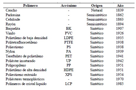 Breve cronología de la invención de los materiales poliméricos