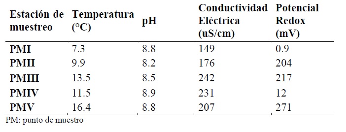 Los resultados de las mediciones in situ de los parámetros fisicoquímicos del agua en los puntos de muestreo se reportan en la Tabla 2.