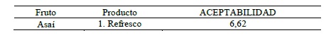 Puntajes obtenidos en la aceptabilidad del refresco de Asaí