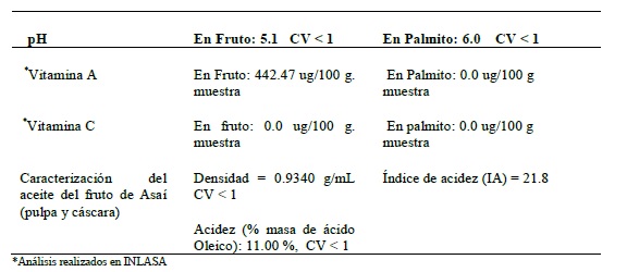 Otros resultados de análisis realizados en fruto y palmito de Asaí
