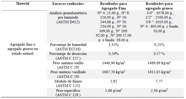 Resultados de los ensayos realizados para los agregados