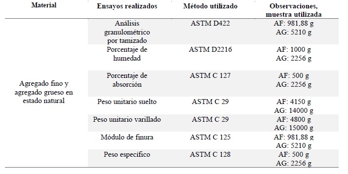 Se realizaron los análisis mostrados en la tabla 1, siguiendo la metodología ASTM (American Society for Testing and Materials) para análisis de materiales.