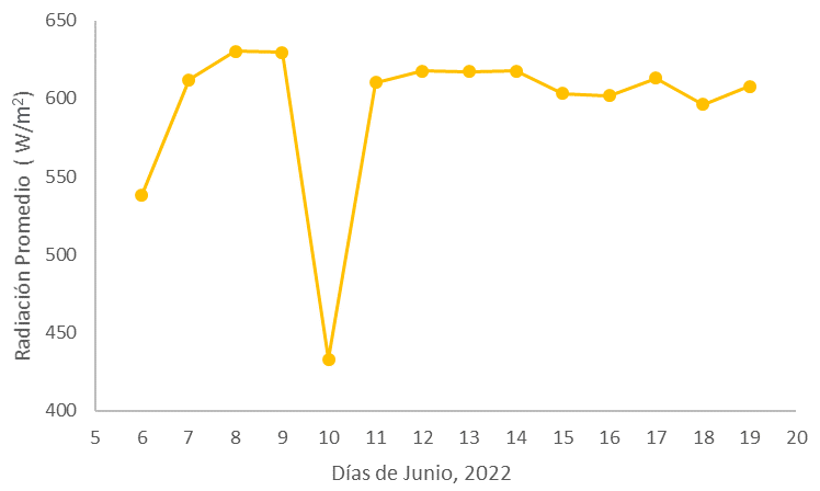 Valores de radiación solar promedio en el periodo que se asoleo las muestras de oca.