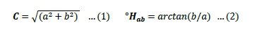 L=luminosidad; a (+rojo, -verde); b (+amarillo, -azul); C = Croma; ºHab = ángulo de matiz