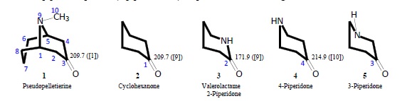 12. Jones, A.J., Hassan, M.M.A. 1972, Carbon-13 magnetic resonance. Chemical shift additivity relationships in .-methyl-4-piperidones, The Journal of Organic Chemistry, 37(14), 2332–2337. DOI:10.1021/jo00979a027