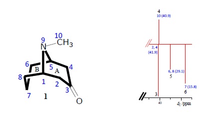In this article, we just want to give a short collateral approach on the 13C NMR spectrum of pseudopelletierine [1], that could be illustrative for the reader.