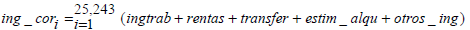 ing_cor = Suma de los ingresos por ingreso monetario y el gasto no monetario.