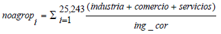 (2)noagrop = Proporción del ingreso corriente que proviene de negocios no agropecuarios.