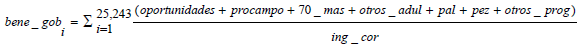 (4)bene_gob = Proporción del ingreso corriente que proviene de beneficios de programas gubernamentales.