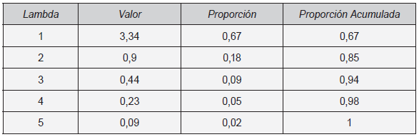 El análisis de componentes principales es pertinente cuando existen altas correlaciones entre las variables, ya que esto indica dependencia lineal entre las variables, dando lugar a que se puedan explicar con un número menor de variables llamadas componentes principales (León et al., 2008).