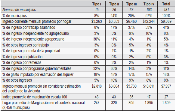 Por otro lado, el tercer grupo refleja la importancia de los vínculos urbano- rurales, y la posibilidad que brinda el trabajo asalariado, aun en localidades muy marginadas, para incrementar notablemente los ingresos.