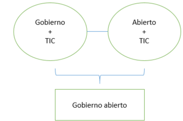 Entonces, al percibir que GA es un término que parece no definirse a sí mismo por ser multidimensional, se propone analizar por separado el término -gobierno- y el término -abierto- pero con un denominador que les es común: las tecnologías de información y comunicación; esto indica que se presenta una doble relación de las TIC en el concepto de GA (como se presenta en la Gráfica 1), por ello, al agrupar las contribuciones de diferentes autores a partir de esta nueva forma de organizarlas permite entender los aspectos más relevantes que cada uno de los dos términos aporta a la construcción del concepto.