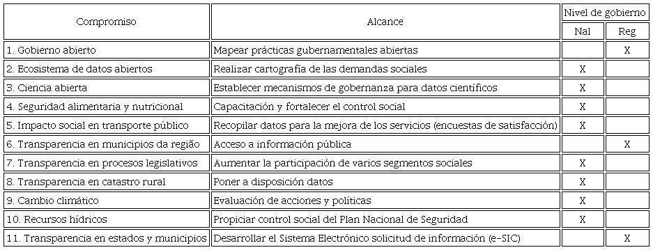 En el Cuarto Plan de Acción en GA 2018-2020, Brasil toma como bandera la participación social más allá de la “digitalización de la burocracia” (Brasil 2018, 7). A continuación, los compromisos: