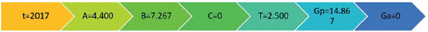 MAG =Meta de Aprovechamiento Anualt =Año de cálculoA =Autoconsumo (volumen/año)B =Uso en bombeo neumático (volumen/año)C =Conservación (volumen/año)T =Transferencia (volumen/año)GP =Gas natural asociado producido (volumen/año)GA =Gas natural asociado adicional no producido en el área de asignación o contractual (volumen/año)Con base en la fórmula anterior y al realizar un análisis de la información que se presenta en los Informes trimestrales de aprovechamiento de gas natural asociado, entregados por Pemex a CNH, se llegó a la conclusión de que, a la fecha de este trabajo, existen tres escenarios o situaciones principales en las actividades de extracción que se presentan en la actualidad, a continuación, se muestran: