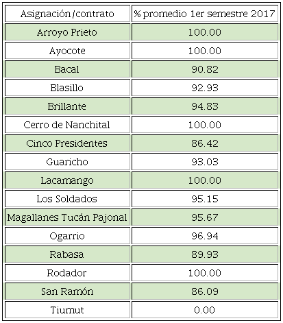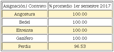 Analizando los porcentajes que resultaron del primer semestre de 2017 podemos observar que fueron muy variables, pues, aun cuando en el primer trimestre algunas asignaciones y contratos alcanzaron la meta, para el segundo trimestre no pudieron sostenerla y viceversa pues algunas áreas que no habían alcanzado la meta en el primer trimestre de ese año, para el segundo trimestre pudieron alcanzarla.