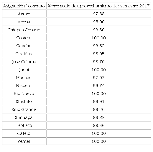 Arrojando porcentajes de aprovechamiento de gas como los que se muestran en la siguiente tabla: