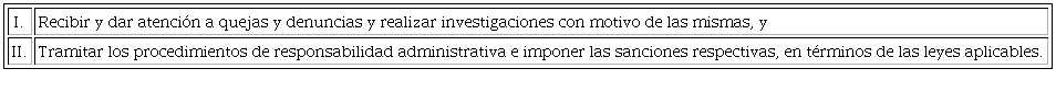 - Derivado de las funciones descritas, que pueden sustanciar los procedimientos de responsabilidades administrativas e imponer sanciones cuando se trate de faltas no graves. En el caso de faltas administrativas graves, deberá remitir los procedimientos ante el TFJA, o ante la Fiscalía Especializada en Combate a la Corrupción cuando los hechos pudieran ser constitutivos de delitos.