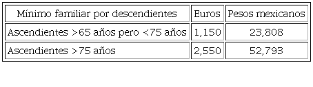 Gastos por rendimientos del trabajo que en la ley actual son por una cantidad fija de 2,000 euros (aproximadamente 41,460 pesos mexicanos).