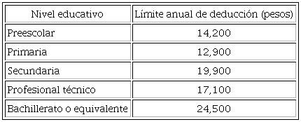 Además, son deducibles los pagos por colegiaturas desde preescolar hasta bachillerato con ciertos límites en virtud de un estímulo fiscal.9