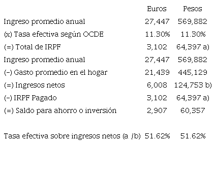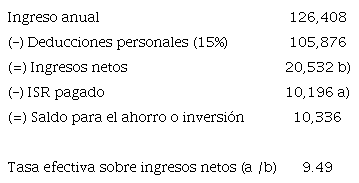 En el supuesto anterior el trabajador estaría pagando una tasa efectiva del 9.49%, lo cual pudiera parecer que no es una carga fiscal excesiva. Sin embargo, la base gravable para efecto de la determinación no es el remanente de dinero real del trabajador después de obtener sus ingresos y pagar sus gastos en el hogar.
