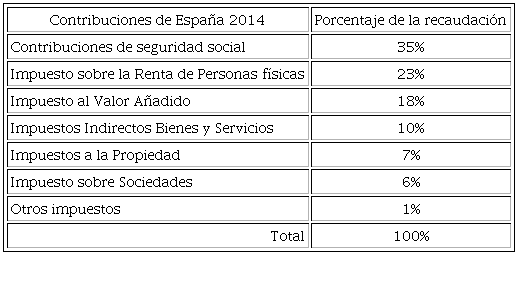 El IRPF en España al igual que en México es una fuente muy importante de la recaudación para ese país. Como se podrá ver en los siguientes datos la recaudación de este impuesto es muy representativa, pues es la más importante tan sólo por debajo de las contribuciones de seguridad social.