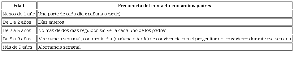 Por otra parte, se ha sugerido el siguiente modelo para concretizar la custodia compartida, desde la Children's Rights Council (Consejo de Derecho del Niño de Estados Unidos):