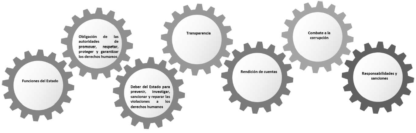 Es preciso advertir que los anteriores ciclos únicamente tienen cobijo en el marco del Estado constitucional, caracterizado por la existencia de controles del poder, en donde las nociones derechos humanos, transparencia y rendición de cuentas son conditio sine qua non para su desarrollo, para coadyuvar a la vigencia, justiciabilidad y exigibilidad de los derechos humanos, así como al fortalecimiento de la gobernabilidad democrática.