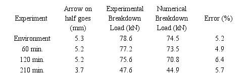 Finally, it was observed that all numerical results had a very similar tendency to those obtained experimentally, with errors less than 7% in determining the load of rupture of the beams of reinforced concrete. In this way the model is valid and accurate enough to predict the residual structural behavior of reinforced concrete beams submitted to pure bending after fire.